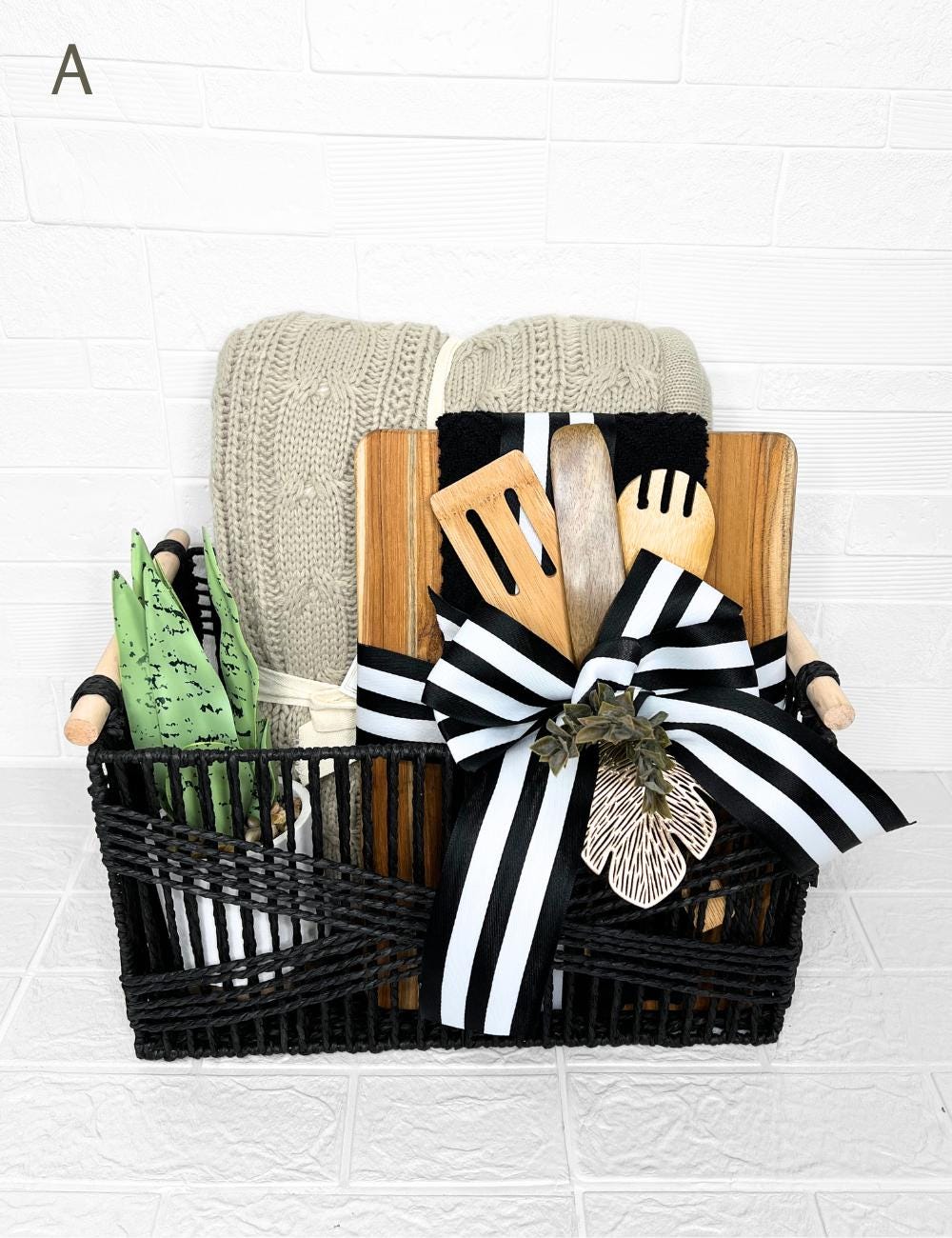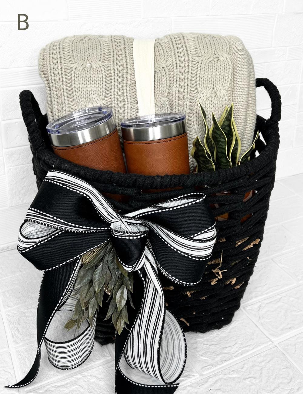 All sets will come with the black woven basket shown in style A. The other gifts baskets are out of stock.