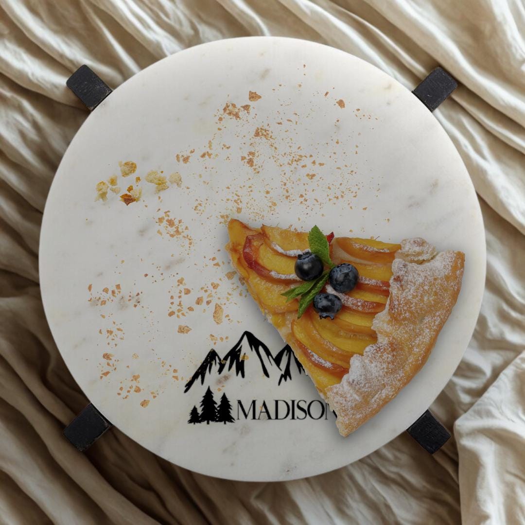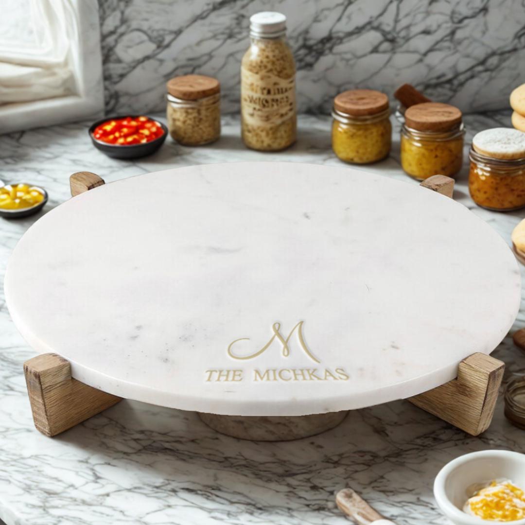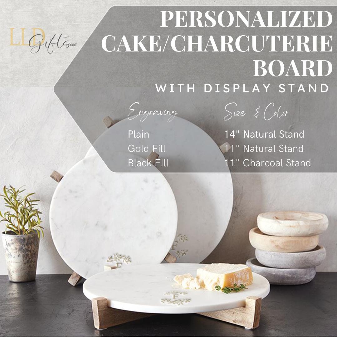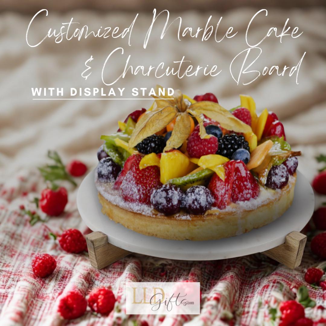 Marble & Charcoal Wood Stand, Marble Cheese Board with stand, Custom serving tray, Charcuterie Board with stand, Cake Stand (Charcoal)