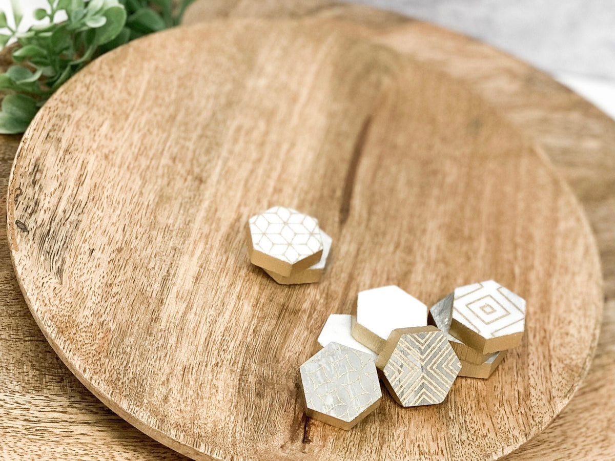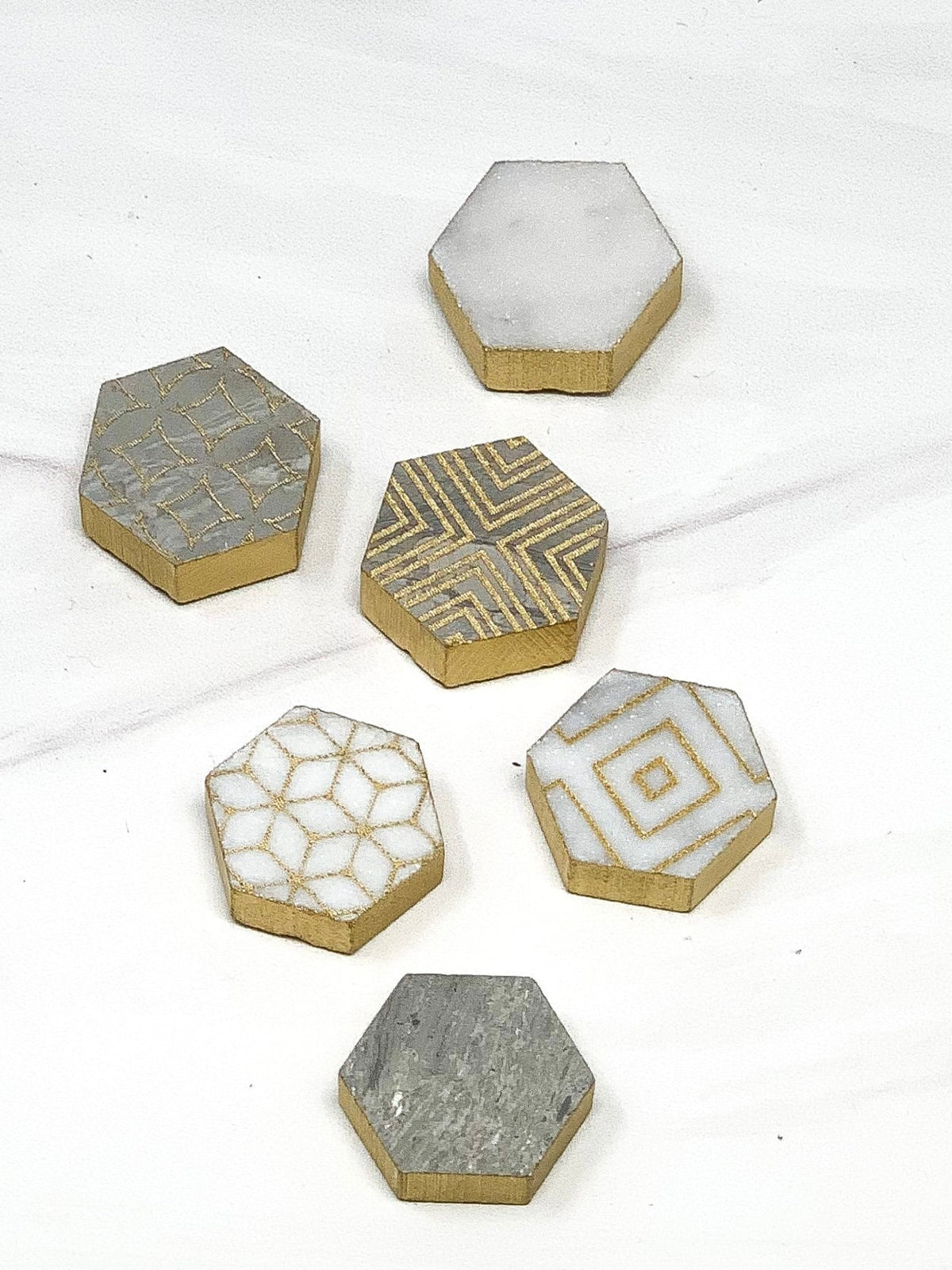 💕 Thick, marble hexagons measure 1" wide, and has a heavy duty magnet on reverse.