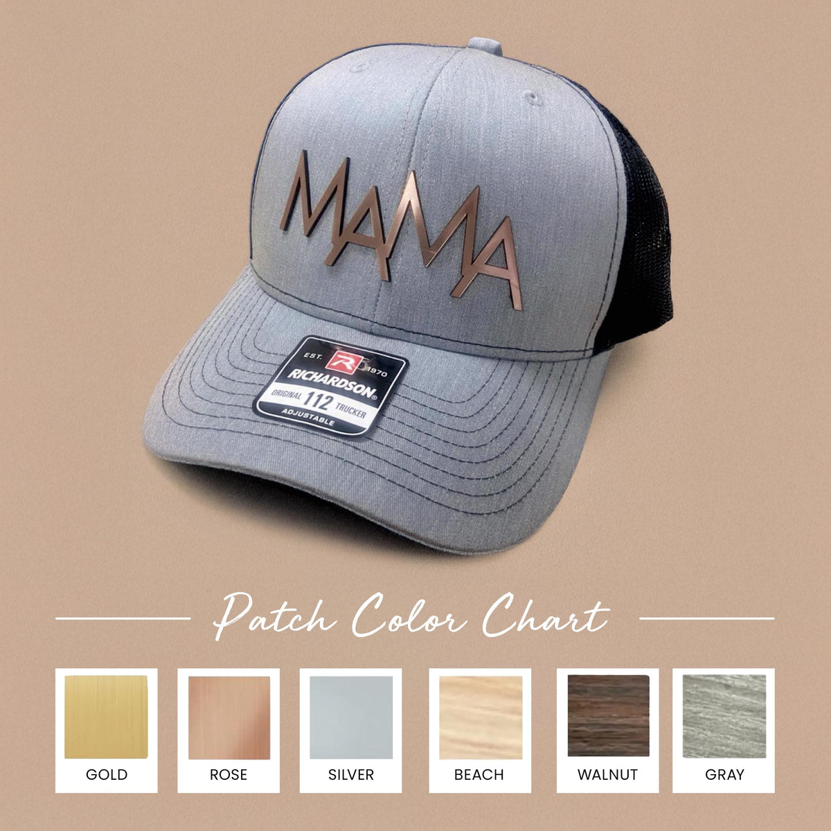 Personalized Gift, Custom Hat for Mom or Dad, Trucker Hat with Metallic or Wood Patch, Baby Shower, Birthday, New Mom or Dad Gift