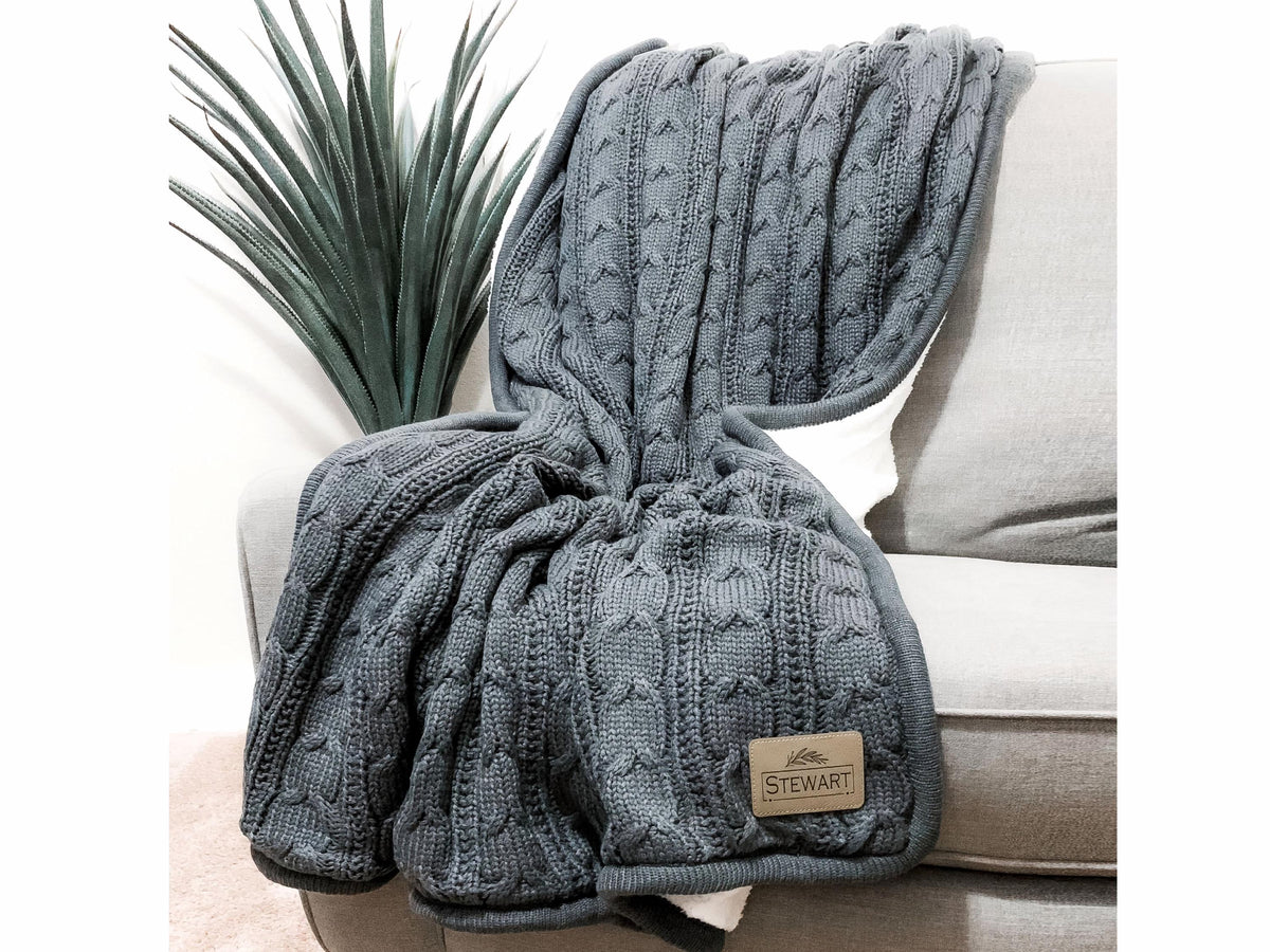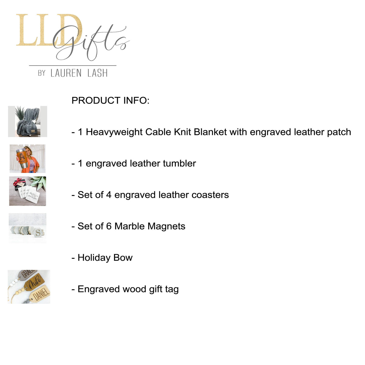 - 1 Heavyweight Cable Knit Blanket with engraved leather patch