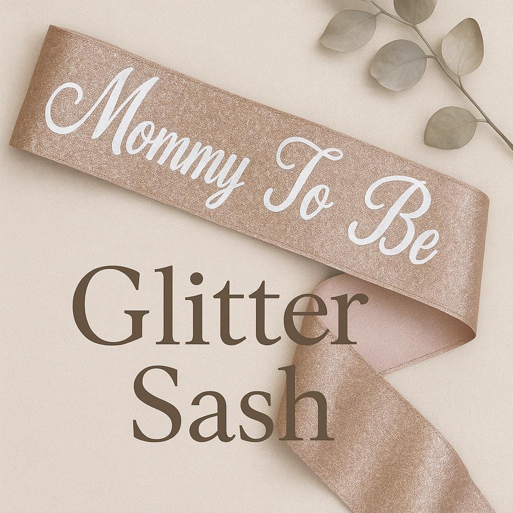 Celebrate the mom to be with this personalized rose gold glitter sash—perfect for baby showers, gender reveals, or maternity photos. This custom mommy to be sash makes a beautiful keepsake and thoughtful gift she'll cherish long after the party.