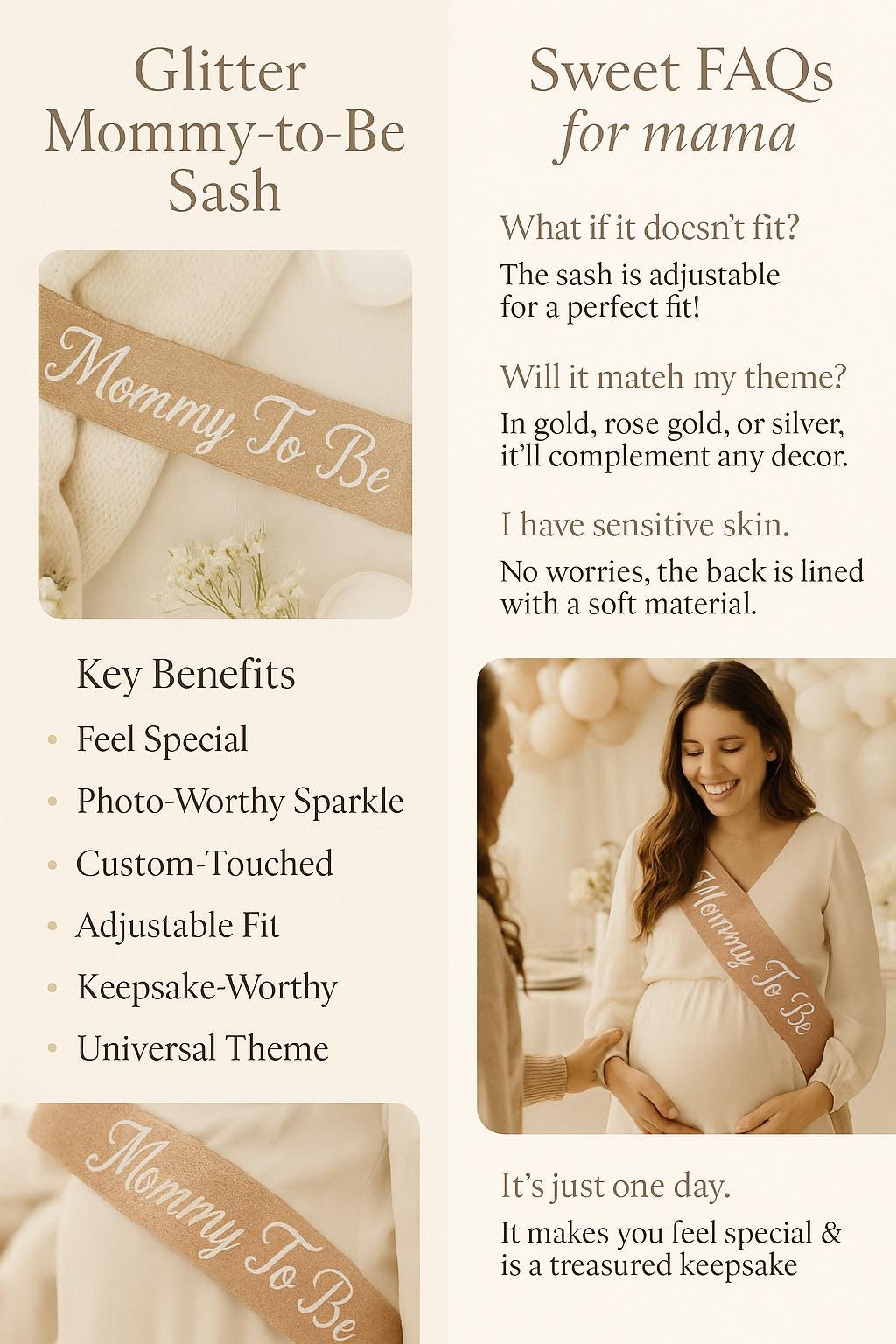Lightweight & Eye-Catching: Makes the mom-to-be feel special without weighing her down