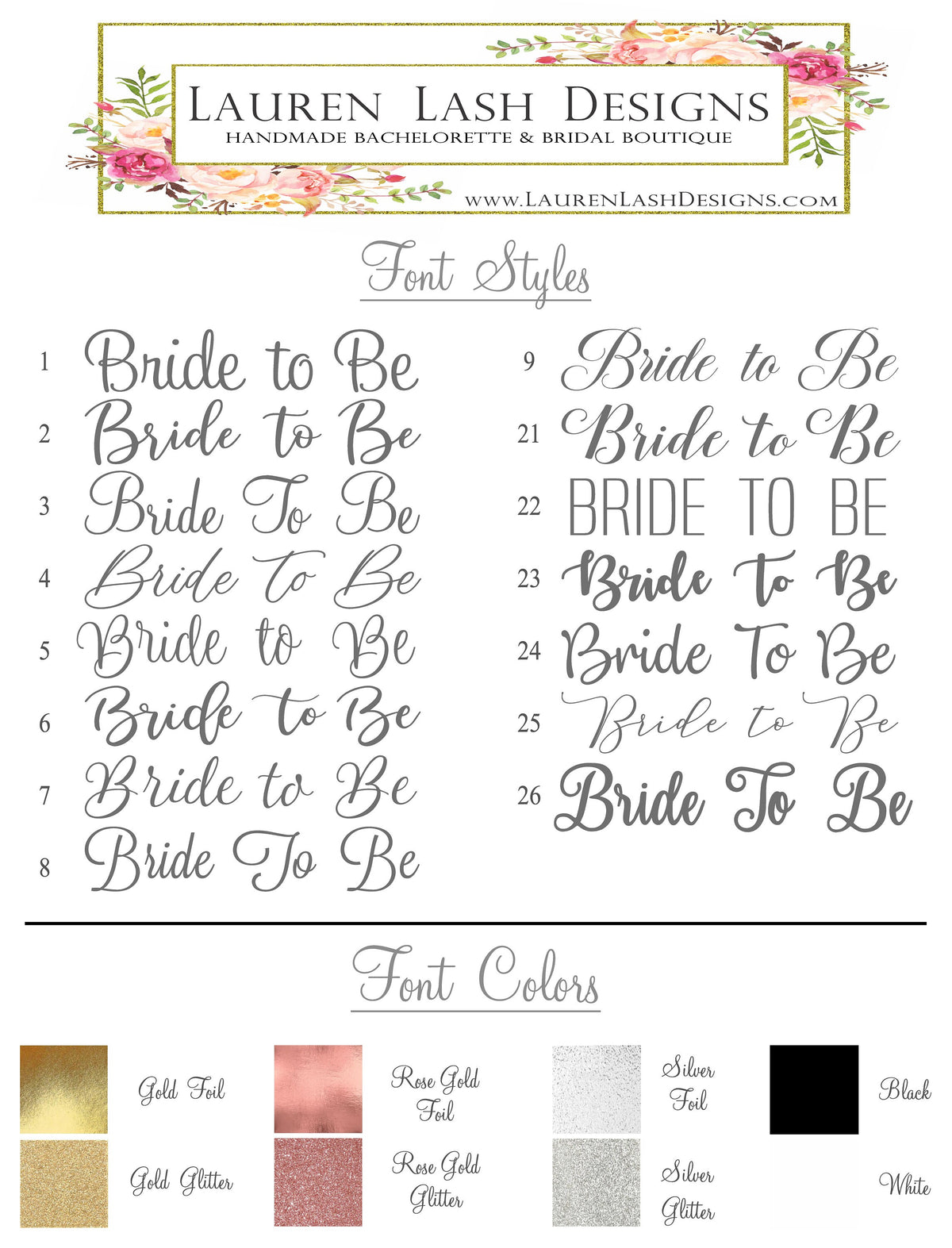 - "Bride To Be", "Bride" or "The Bride" sash - For Personalized sashes..... https://www.etsy.com/listing/472452155/personalize-my-sash-future-mrs-sash?ref=shop_home_active_4