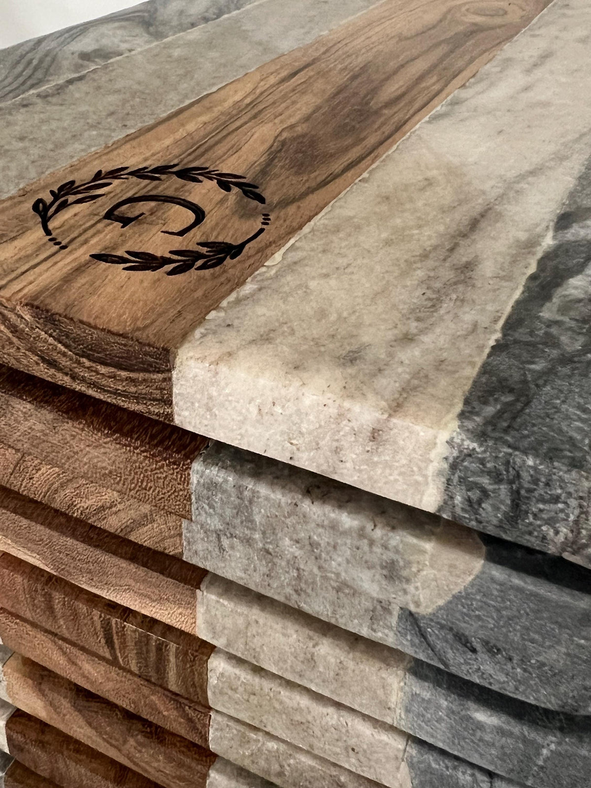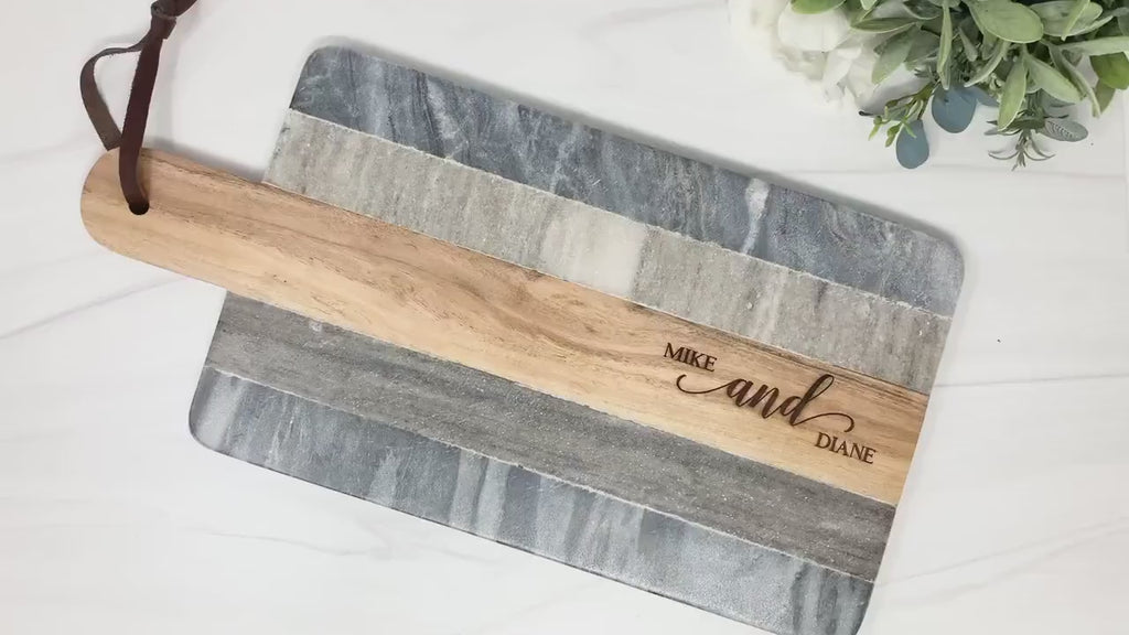✨ Indulge in the perfect blend of elegance and functionality with our Personalized Wood and Marble Cheese Board.